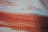 白(オフホワイト)とコーラルの糸を使うとコーラルが小さな「ドット」のように浮き出て文様をつくります、