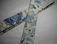 この布地をブレイシーズにしょうと思ったのも、エイジングしたようなエクリュに浮かぶ青の濃淡の植物の姿の美しさと、この布地の質に惚れ込んだからに他ありません、