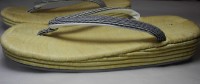 畳と呼びますが実は筍の皮でできていて、雨に弱く少しでも濡れると「モロけて」きますが、婚礼などの場では「畳の雪駄」でなければいけません、