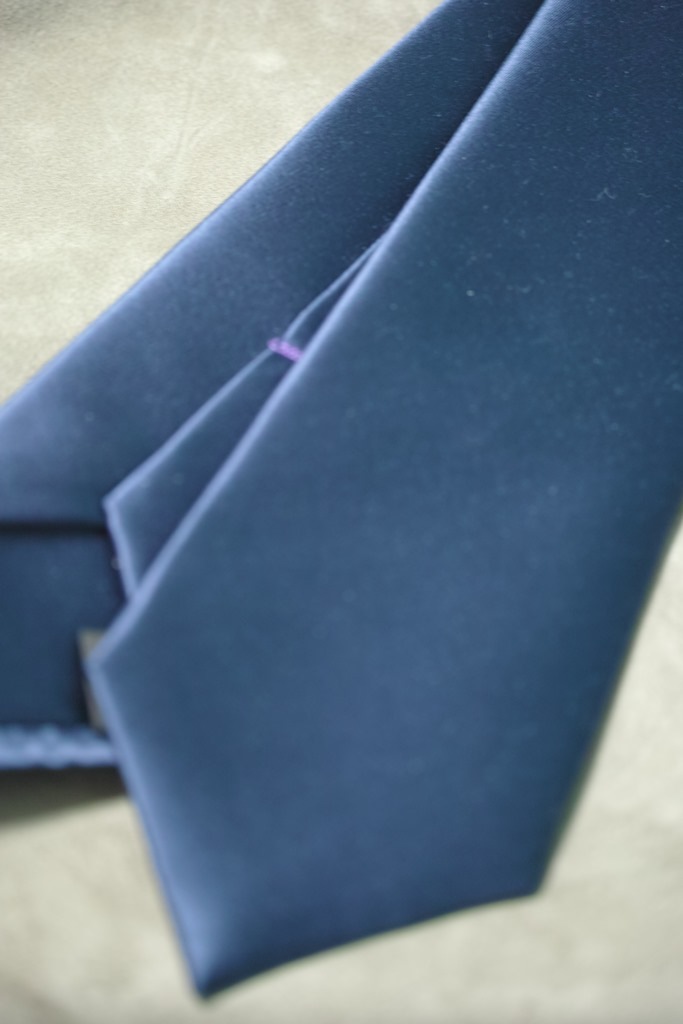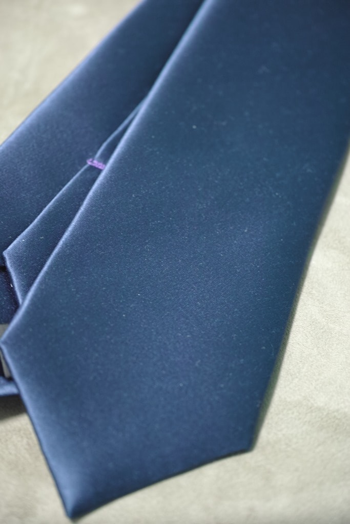 というわけで、これが紳士にとっての理想のタイである。無地のタイならこれ一本もっていれば良い(とくにブルー系のスーツを着るなら、チャコールグレイ、アンセラライトグレイ、黒なんかも良いネ)